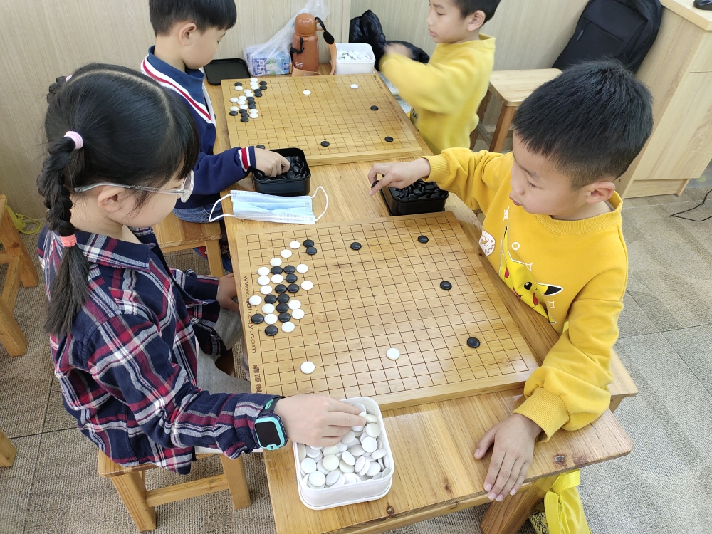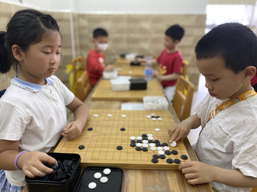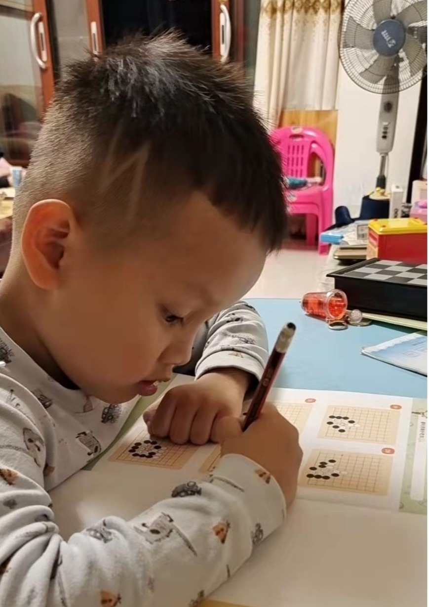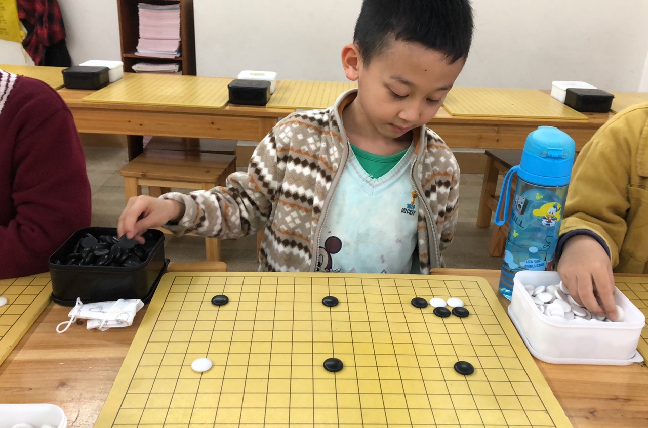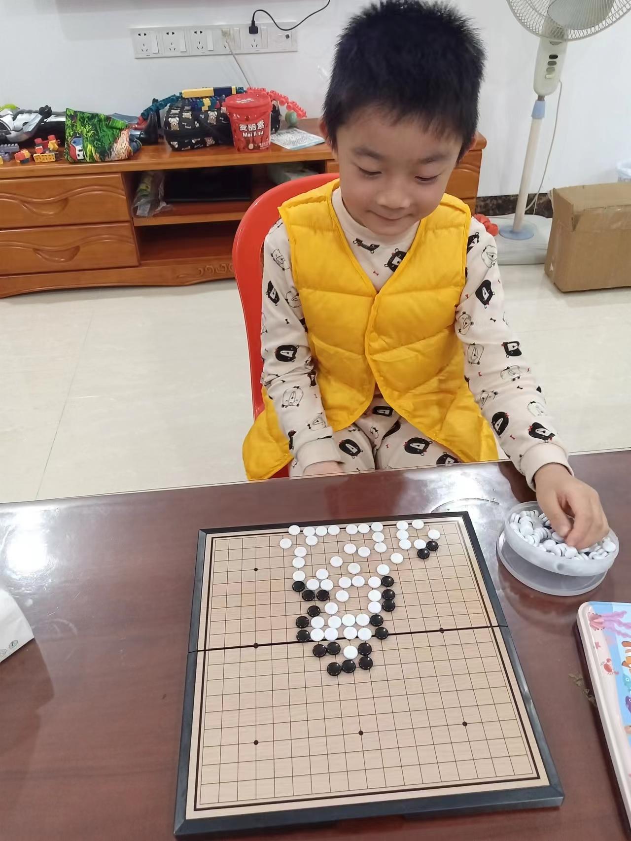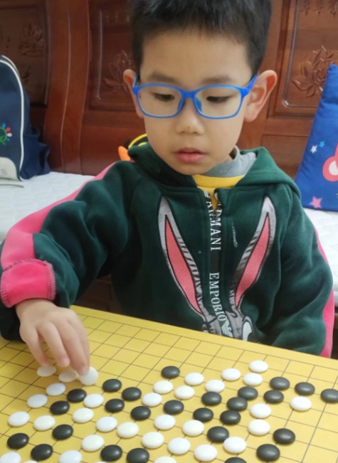 抓拍孩子下圍棋的快樂瞬間。