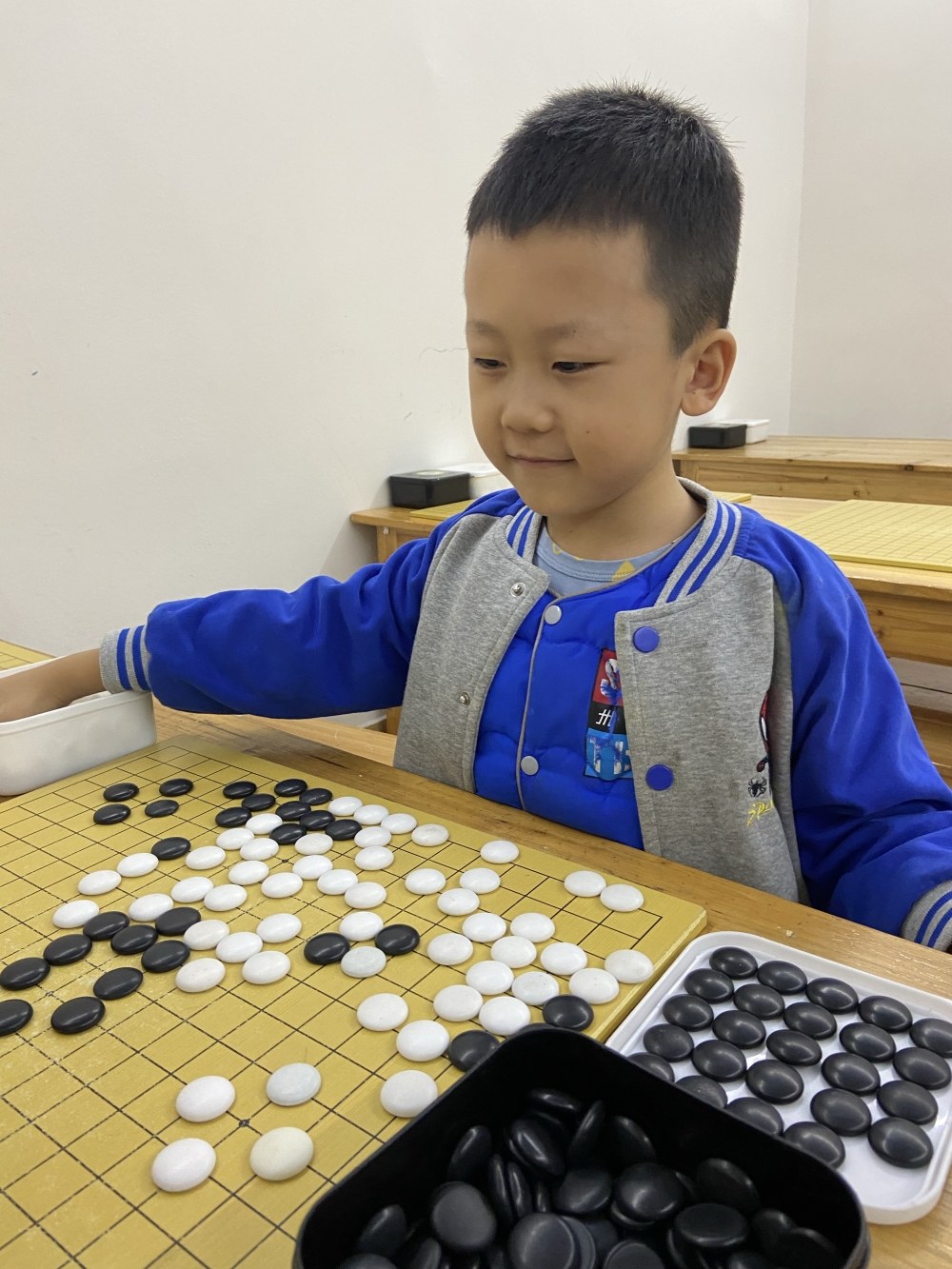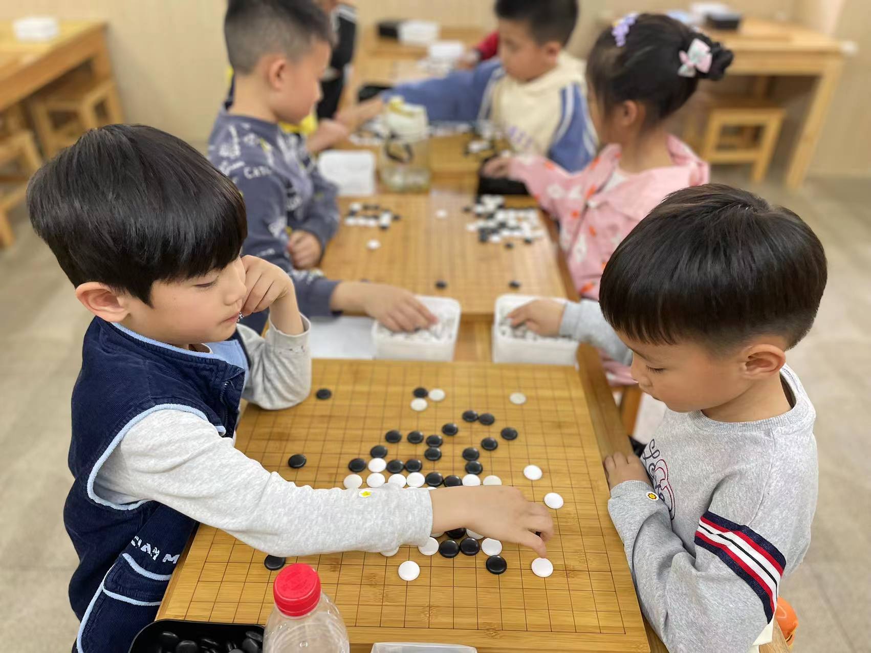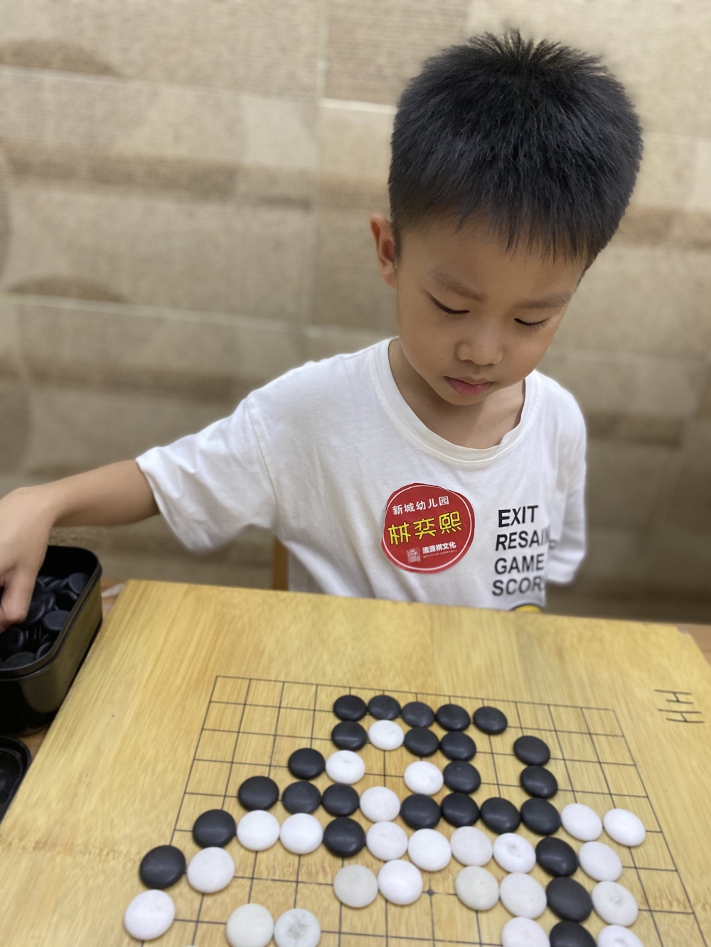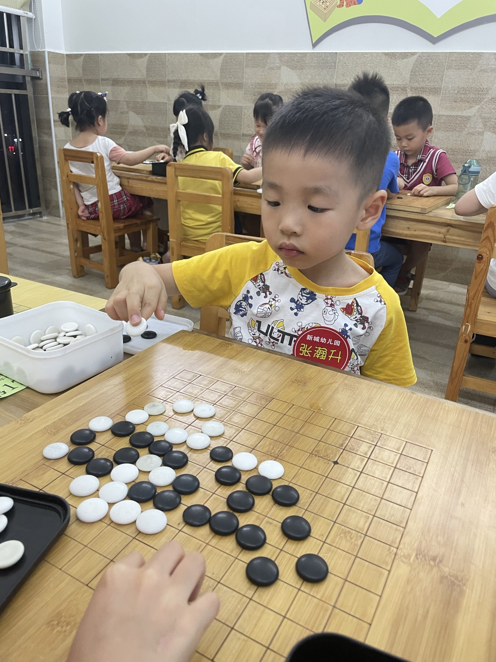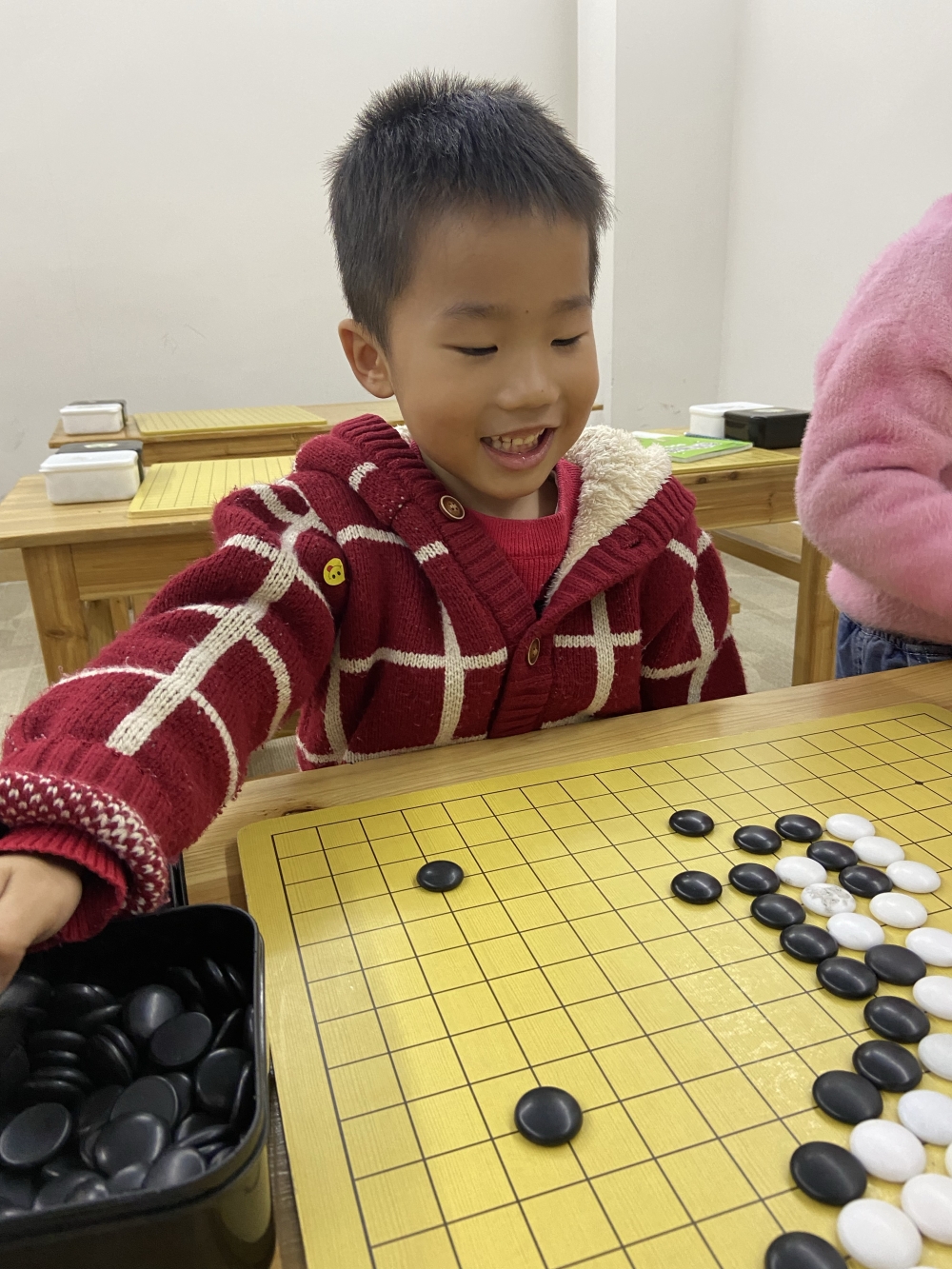 抓拍孩子下圍棋的快樂瞬間。