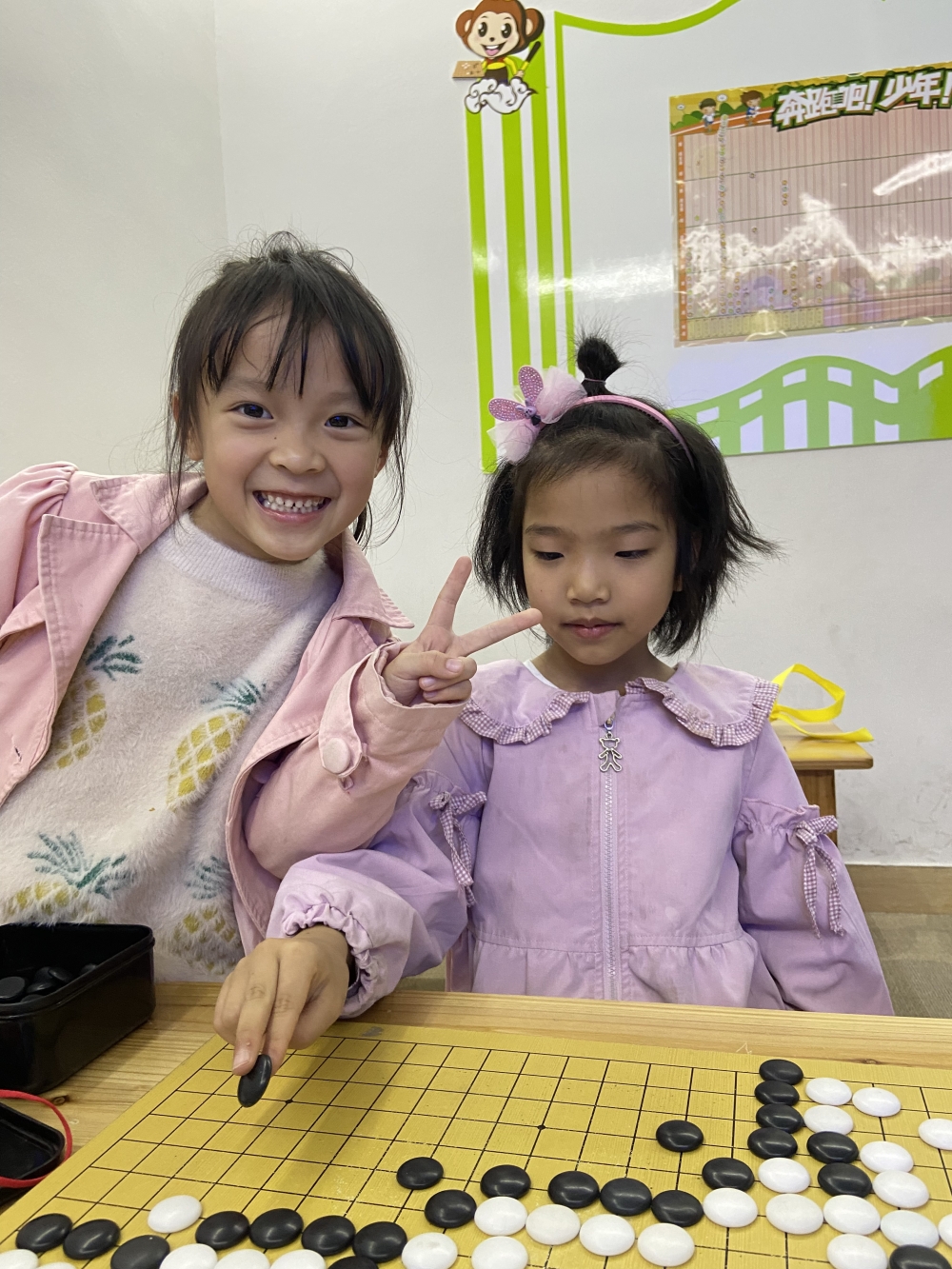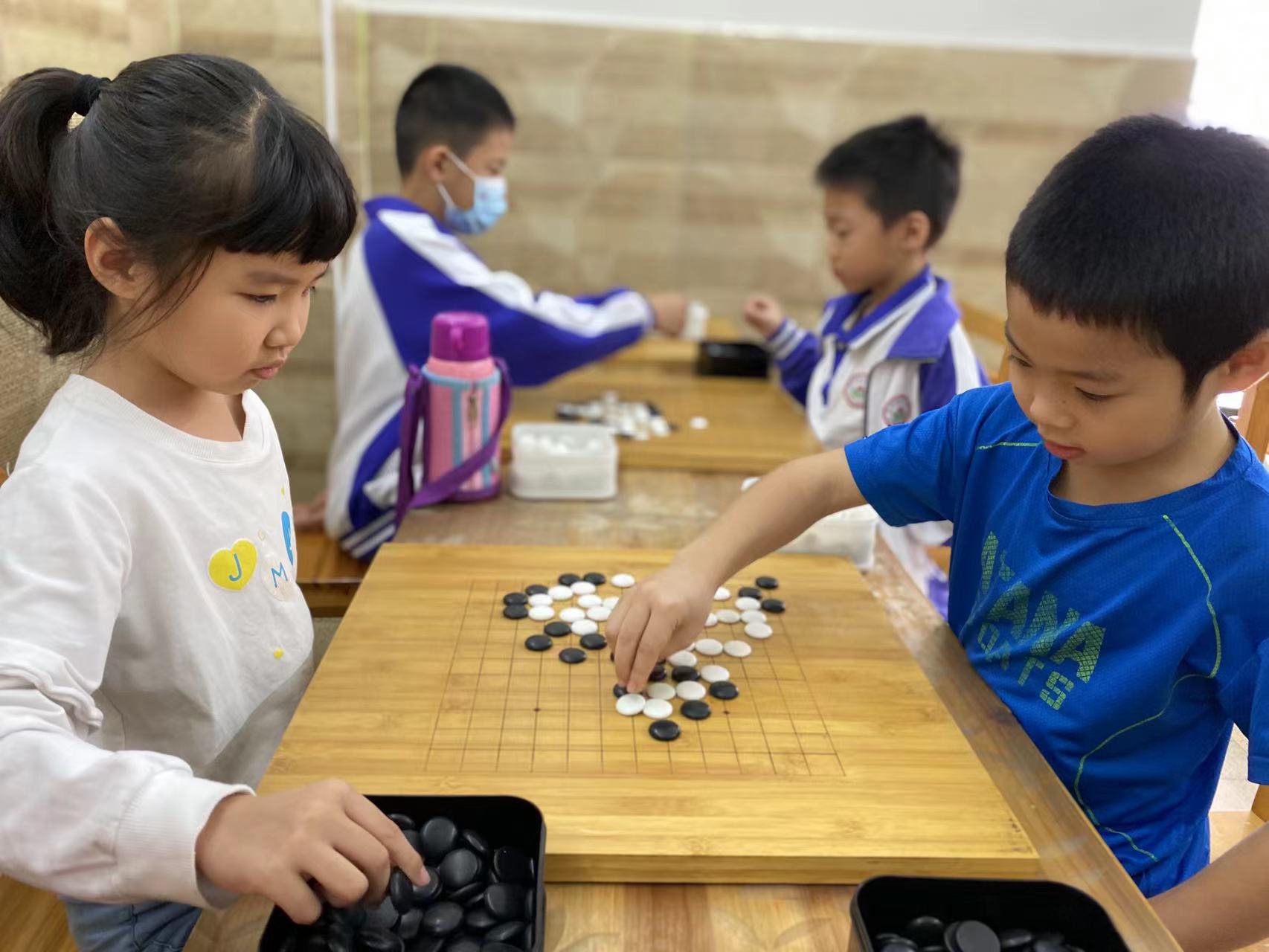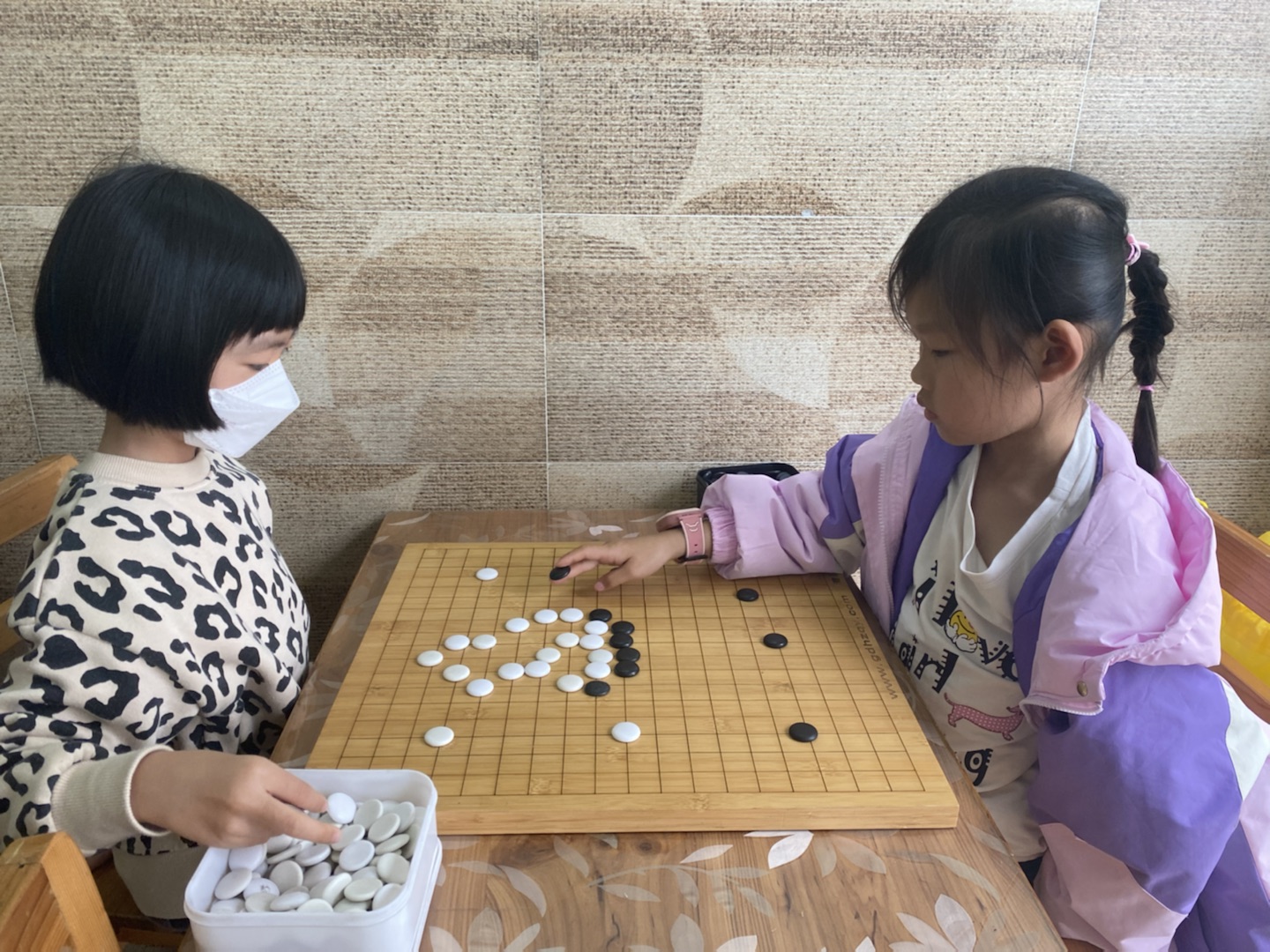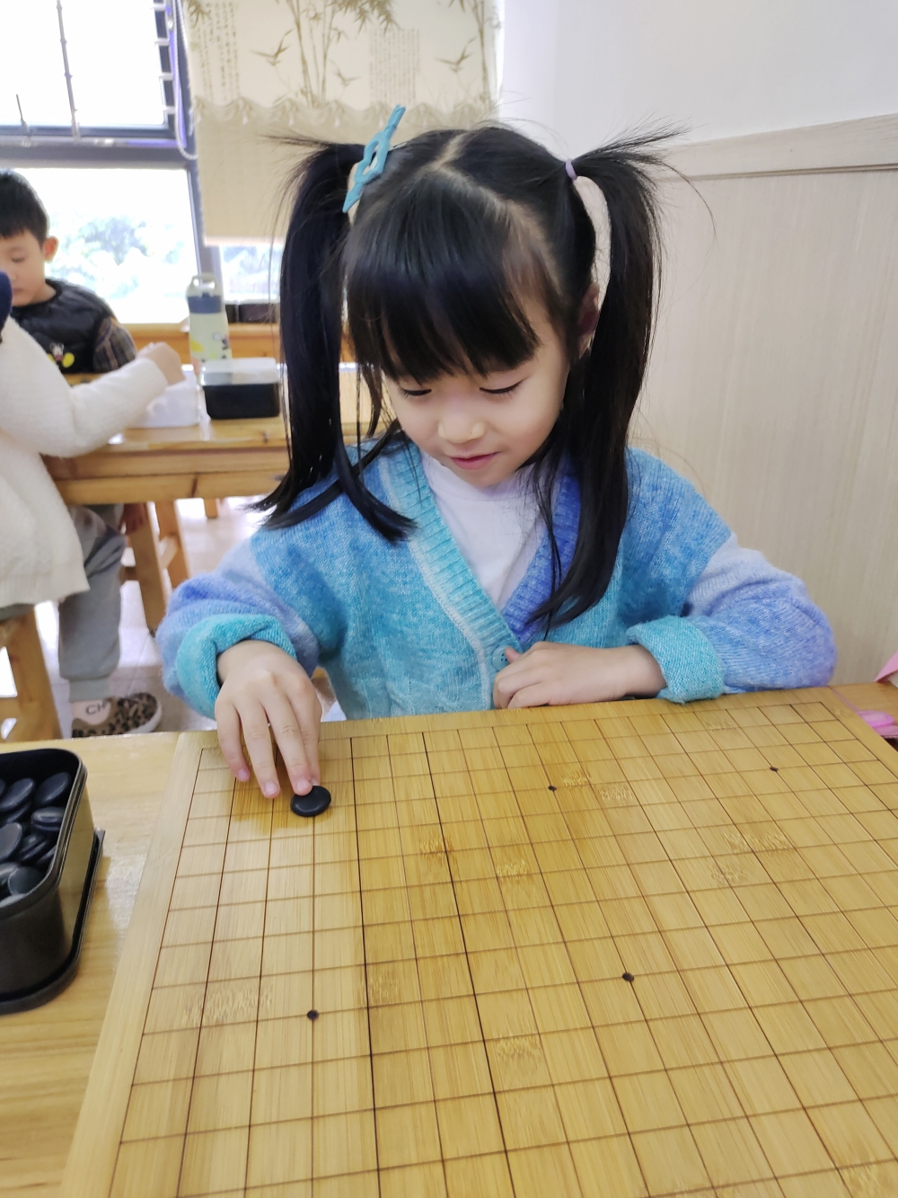 抓拍孩子下圍棋的快樂瞬間。