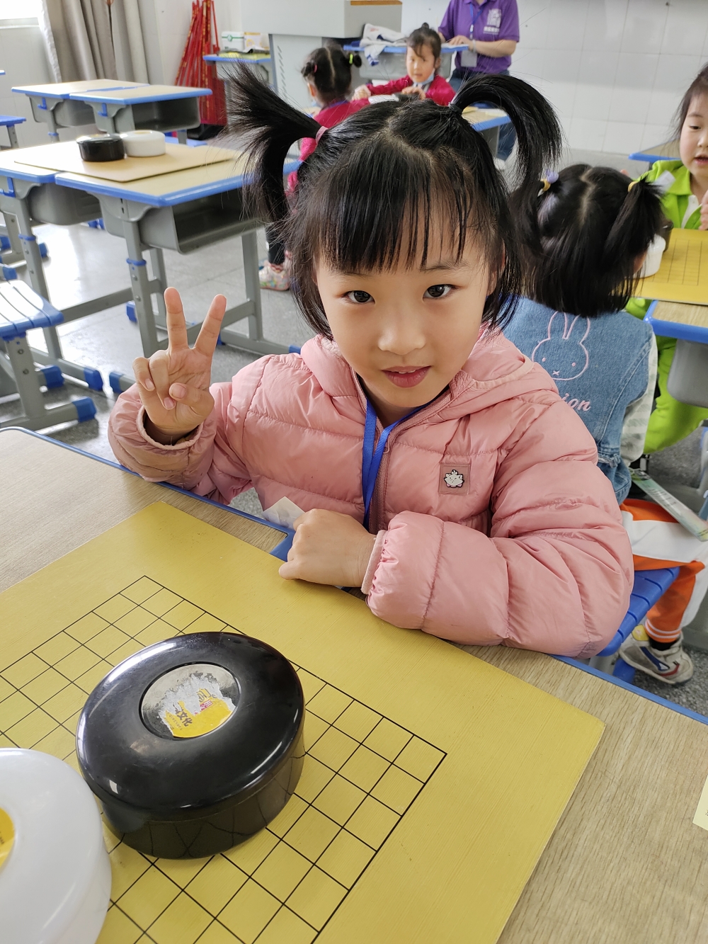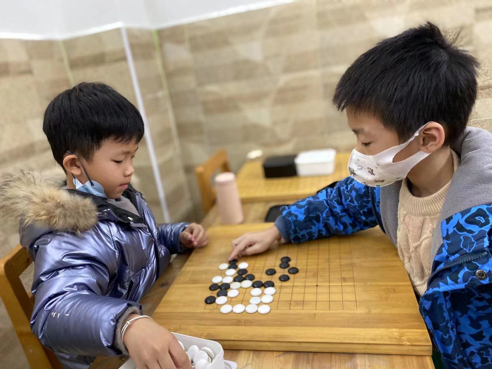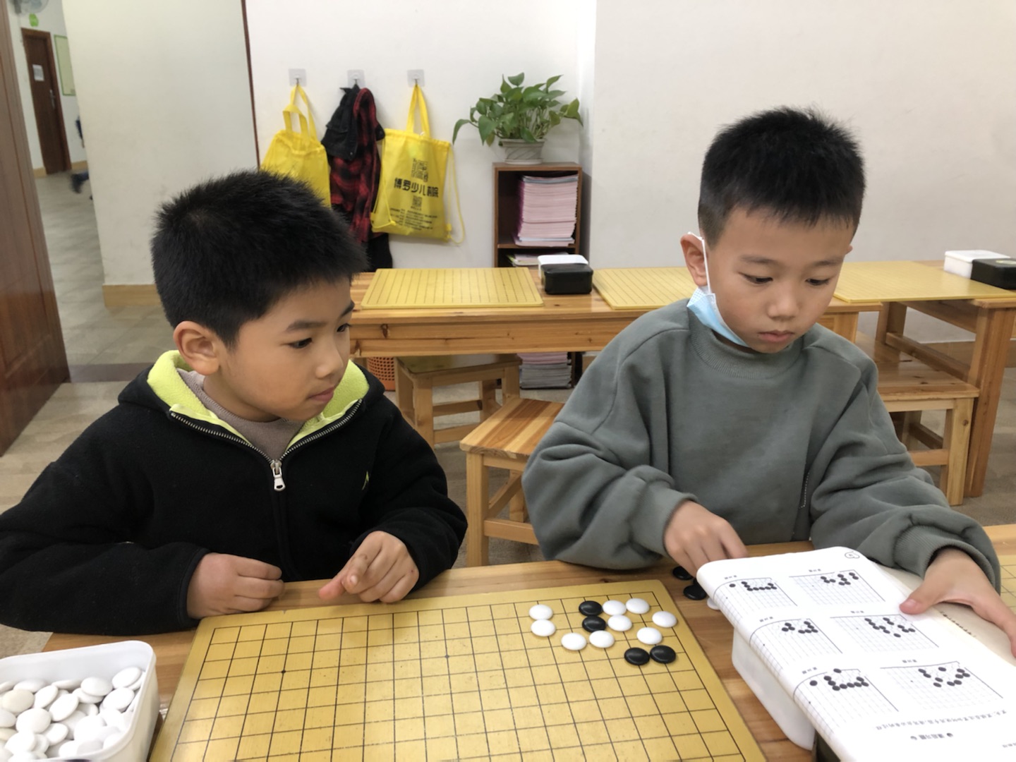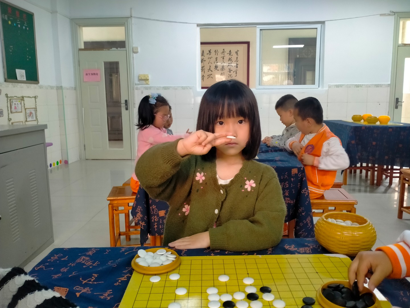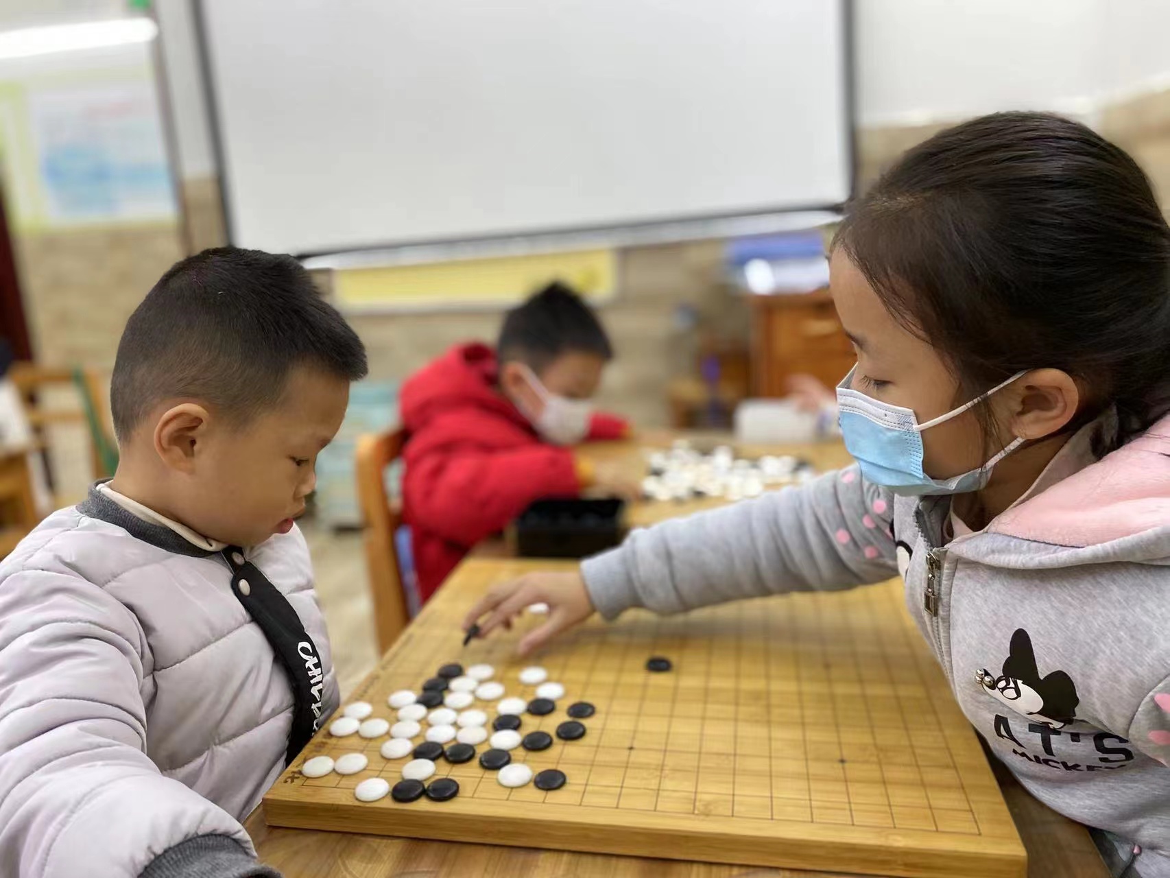 抓拍孩子下圍棋的快樂瞬間。